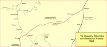 Wrexham was an important focus of coal and iron extraction. The London and North Western Railway was increasing its interests in the area, and wanted a link to its system from Wrexham. This could most conveniently be achieved by a link to Ellesmere on the OE&WR, and this was authorised by Parliament on 31 July 1885 as the Wrexham and Ellesmere Railway. It opened on 2 November 1895. There was a triangular junction at Ellesmere, but the Oswestry-facing curve was not much used until after 1911, when iron ore flows to and from South Wales were important for a few years. The southern end of the Wrexham line and the junctions at Ellesmere closed in 1962.[6]