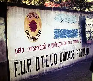 Global Project´s first step was the creation of a political party – FUP/Força de Unidade Popular (Popular Unity Force) on March 28, 1980, two months after Otelo's defeats in the 1980 presidential elections and less than one month before the first attacks by FP-25. FUP, despite inheriting part of the physical and human structures of the former PRP/BR, the party from which most of the operatives came, never came to run for any legislative or municipal elections.[28]