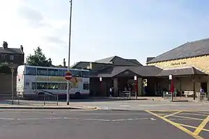 The bus station consists of five stands in total. Stands 1 to 4 are in the bus station, whereas stand 5 is on Crossgate just next to the Bus Station.[1] Unlike most of the bus stations in West Yorkshire, Otley Bus Station is privately owned[2] by the Miller Group who own the Orchard Gate centre. As Otley currently does not have a railway station there is a regular connection from the town to Menston railway station 2 miles (3 km) away.[3] This links the town with the Wharfedale Line to Leeds and Bradford.[4]