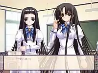 In the adult versions of the game, there are scenes with sexual CGs depicting Mizuho and a given heroine having sex.[3] When the game was ported to the PlayStation 2 (PS2) console, the gameplay was somewhat altered.[4][5] The PS2 version, and later the PlayStation Portable (PSP) version, both had the sexual content removed, and in these versions there is no evidence that physical relationships actually take place between any of the students.[6]