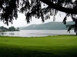 There are many bays on Otsego Lake and four of them are named. One is Blackbird Bay, which located on the southwest end of the lake in the Village of Cooperstown.[14] The next bay north of Blackbird Bay is Muskrat Cove, also known as Rat Cove.[13] Waterlily Bay is a bay located on the west side of the lake about 2.5 miles (4.0 km) from the foot of the lake.[15]: 12 Then on the northern end of the lake is Hyde Bay. Glimmerglass State Park is located in this bay. Hyde Bay is named after the Hyde family.[13][16]