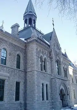 The Heritage Building is today part of Ottawa City Hall. It was originally built in 1874 as Ottawa Normal School and served as a teacher's college. The Gothic Revival building stands at Elgin Street and Lisgar and several extensions were added to the rear of the building.