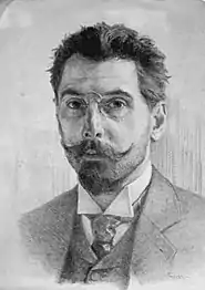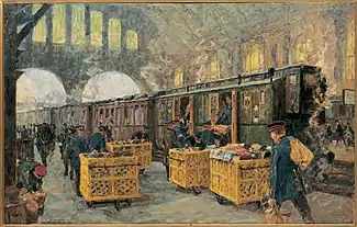 When the Secretary of the Post Office, Heinrich von Stephan, became aware of his talent, arrangements were made for him to study in Berlin. He went there in 1891, enrolled at the Prussian Academy of Art, and studied landscape painting. His most influential instructor was Franz Skarbina.[1] While studying, he worked at the Oberpostdirektion, where he painted façades and small murals, depicting post offices.