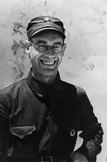 However, Shanghai was at that time a backwater in Chinese revolutionary affairs, the local communist movement having been effectively crushed by Chiang Kai-shek's Kuomintang (KMT) in the Shanghai massacre of 1927. The Chinese Communists had subsequently retreated to the countryside and started to organize in the province of Jiangxi.[1] In the later part of 1933 Braun arrived in Ruijin, at that time capital of the "Chinese Soviet Republic" set up by the surviving Chinese Communists, where he became a military adviser.
