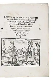 ![]() News pamphlet relating the Ottoman–Mamluk War (1516–1517), including an account of Sultan Selim's visit to Jerusalem. Printed in Basel, dated 1518 | |||||||||