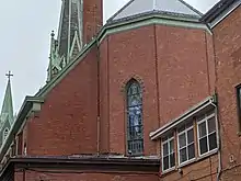 That building period was at the occurrence of a schism[4] in the Roman Catholic church, with reformist Lithuanian and Polish congregants bemoaning the lack of Polish speaking priests in the clergy. The reform movement among European immigrants began in the 1870s, immigrants wanted to establish their own parishes where priests would speak their language, but received little support from American bishops who were mainly of Irish and German descent. In 1884, a meeting of American bishops in Baltimore decided that property of parishes belonged not to the community that financed it but to the diocese.[5] Lawsuits between pastors and parishioners over the property were quite common.[6] In protest of such policies, the Polish National Catholic Church (PNCC) was established in 1897.[5]