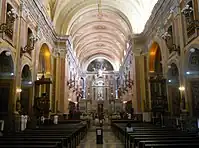 The floor plan of the cathedral is in the shape of a Latin cross. It has a single nave with side chapels and a "fairly deep" chancel.[5]