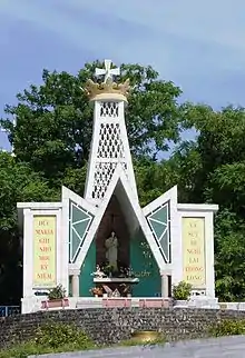 Our Lady of Trà Kiệu (Vietnamese: Đức Mẹ Trà Kiệu is the name given by Vietnamese Catholics to a Marian apparition in a shrine built in 1898 on Bửu Châu hill east of Trà Kiệu village in Duy Sơn commune, Duy Xuyên district, Quảng Nam province, Vietnam. The shrine was dedicated to Our Lady Help of Christians in remembrance of the Virgin Mary's help in the Catholic resistance to the Cần Vương movement at this location in 1885.[1] On May 31, 1971, Bishop Phêrô Maria Phạm Ngọc Chi selected Trà Kiệu as the location of the Marian Center of the Roman Catholic Diocese of Đà Nẵng. The diocese organizes an annual Our Lady of Trà Kiệu Festival on May 31.[2]