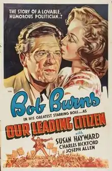 Our Leading Citizen is a 1939 American comedy film directed by Alfred Santell and written by Jack Moffitt. The film stars Bob Burns, Susan Hayward, Joseph Allen, Elizabeth Patterson, Gene Lockhart and Charles Bickford. The film was released on August 23, 1939, by Paramount Pictures.[1][2]