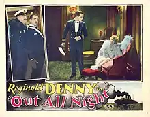Out All Night is a 1927 American silent comedy film directed by William A. Seiter and starring Reginald Denny, Marian Nixon and Wheeler Oakman.[1]
