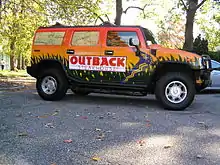In 2012, Outback Steakhouse became a sponsor of the Ryan Newman and the No. 39 Chevrolet for Stewart-Haas Racing in the NASCAR Sprint Cup Series. In their first race as sponsor, Newman won the 2012 Goody's Fast Relief 500 at Martinsville Speedway.[15] One of the promotions the company had with Newman is a free Bloomin' Onion on the Monday after a race in which Newman would finish in the Top 10.[16] Kevin Harvick took over Outback's sponsorship and promotion in 2014 for two races in their No. 4, after Newman left the team to drive Richard Childress Racing's No. 31 car.[17] The company was on Harvick’s car from 2014 until 2018, including his championship in 2014, and in 2019 and until the COVID-19 Pandemic in 2020, the steakhouse was a personal sponsor which kept the Blooming Monday promotion around still. It ended after 2020. The company also sponsored retired Sprint Cup Series driver and current Fox NASCAR announcer Jeff Gordon's No. 67 for the AC-Delco 200 in the Busch Series during the 1990 season.[18][19]