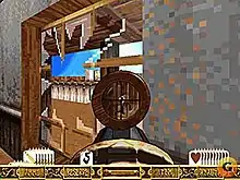 Outlaws is powered by an upgraded version of the Jedi engine, which was previously used on Star Wars: Dark Forces.[4] LucasArts' INSANE animation engine is used to display the game's cutscenes. The game was also originally planned to have 12 unique multiplayer characters, each with their own in-game attributes. The final release halved that number to six characters. The game was inspired by western films such as The Good, the Bad and the Ugly and A Fistful of Dollars, as well as other Clint Eastwood westerns.[3] It was released for Microsoft Windows on April 7, 1997. It is the first video game to feature a sniper zoom, and one of the earliest examples of a reloading mechanic.[5][6] Despite the serious tone of the game, Outlaws maintained a few easter egg jokes, including Max of the Sam & Max series, hidden inside a building, a pair of grey aliens experimenting on a cow, and several references to the Indiana Jones series of games and movies.[4][6][7]