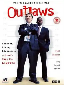 Outlaws is a British television comedy-drama series, first broadcast on BBC Three on 1 October 2004, that ran for a total of twelve episodes across a single series.[1] The series stars Phil Daniels as Bruce Dunbar, the head of a shifty legal firm dealing in criminal law, who trains new employee Theodore Gulliver (Ray Emmet Brown) in his fairly underhand methods. While Gulliver, fighting Dunbar's influence, tries to do his job as best he can, Dunbar has his own problems, from clients who ransack his offices, to dealing with his self-abusive teenage daughter. Produced by World Productions, the series was described as a mixture of black comedy and an accurate portrayal of the inner workings of the British legal system.[2]