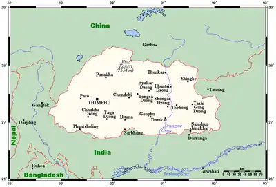 - Outline of Bhutan at Curlie