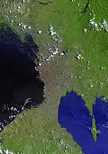 - isthmus in southern Luzon between Manila Bay, an arm of the South China Sea, and Laguna de Bay.