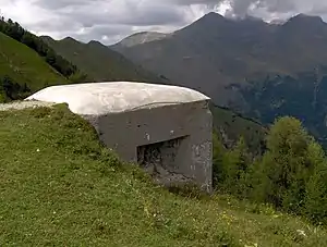 Ouvrage Plan Caval is a lesser work (petit ouvrage) of the Maginot Line's Alpine extension, the Alpine Line, also known as the Little Maginot Line. The ouvrage consists of two infantry blocks and one observation block facing Italy. The ouvrage is located on the heights of L'Authion, surrounded by older fortifications. Three additional blocks were planned to make it a gros ouvrage but were not built. Cost for the full ensemble was estimated at 23 million francs.[1]