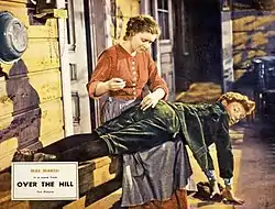 Over the Hill is a 1931 American Pre-Code black-and-white melodrama film directed by Henry King for Fox Film Corporation. Starring Mae Marsh, James Dunn, Sally Eilers, and Olin Howland, the story concerns a young mother who devotedly cares for her children but when they grow up, most of them turn their backs on her and she has no choice but to go live in the poorhouse. The film is a remake of the 1920 silent film Over the Hill to the Poorhouse, which had been a major box-office hit for Fox. The story was based on a pair of poems by Will Carleton. Over the Hill also inspired the South Korean film adaptation Over the Ridge (1968). The production marked Marsh's first sound film and the second pairing of Dunn and Eilers, who had achieved celebrity in Fox's Bad Girl released earlier in the year.