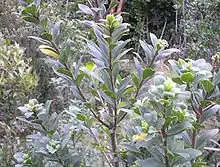 O. pillopillo has been claimed to be 'one of the four major hallucinogens’ used by the Mapuche of Chile. The other three plant species involved are drawn from a list including Latua pubiflora, Desfontainia spinosa, Drimys winteri, Lobelia tupa and Datura stramonium.[2] The specific name pillopillo is one of the common names for the plant in the Mapudungun language - another of which is Lloime - while a Spanish common name Palo hediondo ("Stinking tree") apparently refers to the unpleasant smell of the foliage. Chilefora records the plant as being "poisonous" (without further detail) - a far from uncommon property in the Thymelaeaceae, a predominantly Southern Hemisphere plant family containing many species used to manufacture paper and cordage and likewise many toxic species with violently purgative properties, though few yet known to be psychoactive.[3] Neither Claude Gay's original description of the plant (as Daphne pillopillo), nor Murillo's oft-quoted account in his classic work on the medicinal plants of Chile make any mention of any effects of Ovidia pillopillo on the CNS, both of which suggest that Rätsch may be in error claiming the plant to be hallucinogenic (although this by no means rules out a rôle for the plant of some other kind in Mapuche ritual).