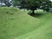 Iolo's depiction of the hall and estate has been variously described as impressionistic[10] or almost photographically immediate.[11] He emphasises the resemblance of the hall to recent masterpieces of church-building, and dwells lovingly on its many luxurious features.[12] Yet he values Sycharth not so much as an architectural marvel but as a haven of safety and refinement in a troubled world.[13] In this poem it symbolizes the order and stability of an ideal society,[14] particularly through the poet's imagery of the symmetrical construction of the hall.[15] Such a picture of Sycharth could hardly have been painted during Glyndŵr's revolt, during which it was burned to the ground, nor during the period of discontent which led up to it. The poem was probably written around 1390.[3]