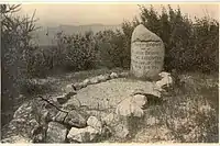 A marching band escorted the 2,000 mourners, nearly the entire population of Pasadena, in the funeral procession up to Little Roundtop Hill in West Altadena in the Meadows (34.216199°N 118.161381°W).[66] Owen had asked to be buried on the hilltop near his cabin,[43] in a spot called sublime, "on one of the highest peaks of the Sierra Madre mountains, commanding a view of the valley below for 60 miles (97 km), the sea and even the islands of the sea."[47] It was subsequently called Brown Mountain.[67]