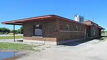 The train station was an internal Canadian Pacific design, done under the supervision of the Chief Engineer of the railway. Colin Drewitt, CP's in-house architect, signed the blueprints for the station on February 11, 1946, in Montreal. Drewitt designed most of the railway's post-war stations (he is known to have worked for the CPR as late as 1952 [5]). Period photos also show that the "20th Century" font was used to spell out the name of station and of the railway on the building.[6]
