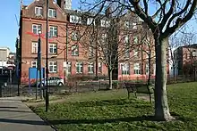 The appointment of Arthur Winnington-Ingram as Head of Oxford House in 1889 and the ever-widening popularity of the programmes being run by the Oxford House necessitated a move to more substantial property. A substantial fundraising effort that followed included Henry Scott Holland's rallying-cry, "come and be the squires of East London"[4] and Winnington-Ingram's plea to Oxford men that "if they would not come and live in Bethnal Green, they must at least supply a house for those who would."[5] The appeal raised enough capital to purchase the land on which Oxford House now stands, and construct a solid red-brick 5-storey building, designed by the renowned architect Sir Arthur Blomfield. It was opened by the Duke of Connaught in 1892, and designated a Grade II listed building in 2011.