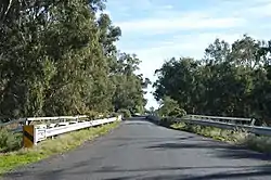 Just two years later another traveller who arrived at Oxley on the mail-coach described Delandre's pontoon-bridge as "a wretched apology for a bridge, in the shape of a pontoon, the condition of which seems to be verging upon the last stages of dissolution".[10]