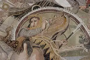 Oxyathres (Ancient Greek: Οξυάθρης; in Old Persian Vaxšuvarda; lived 4th century BC) was a brother of the Persian king Darius III Codomannus. He was distinguished for his bravery, and in the battle of Issus, 333 BC, took a prominent part in the combat in defence of the king, when attacked by the Macedonian cavalry under Alexander himself, as shown in the celebrated Alexander Mosaic found in Pompeii.[1] He afterwards accompanied Darius on his flight into Bactria, and fell into the hands of Alexander during the pursuit, but was treated with the utmost distinction by the conqueror, who even assigned him an honourable post about his own person; and subsequently devolved upon him the task of punishing Bessus for the murder of Darius.[2] He was also the father of Amastris queen of Heraclea.[3]
