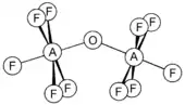 The compounds [Ta2OX10]2− and [M2OCl10]4− (M = W, Ru, Os) have two MX5 groups joined by a bridging oxygen atom.[18] Each metal has an octahedral environment. The unusual linear M−O−M structure can be rationalized in terms of molecular orbital theory, indicating the presence of dπ — pπ bonding between the metal and oxygen atoms.[19] Oxygen bridges are present in more complex configurations like M(cp)2(OTeF5)2 (M = Ti, Zr, Hf, Mo or W; cp = cyclopentadienyl, η5-C5H5)[20] or [AgOTeF5-(C6H5CH3)2]2.[16]