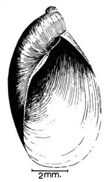 | Drawing of an apertural view of the shell of Oxyloma patentissima | |
