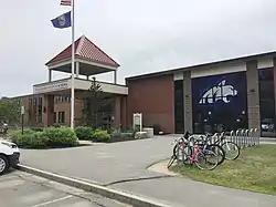 Oyster River High School (ORHS), part of the Oyster River Cooperative School District (ORCSD), is a public high school located in Durham, New Hampshire, United States, with an enrollment of nearly 800 students.[2] It serves Durham and the neighboring communities of Lee, and Madbury. The high school opened, and the first graduating class was in 1956. Dean Sackett was the Chairman of the School Board, Arthur E. Toll was the Superintendent of Schools, John H. Day was Principal, and George W. Pasichuke was the Associate Principal. The school yearbook is named Trion, named by Margaret Campbell in a school-wide contest.[3] The high school moved to its present site on October 22, 1964.[4]