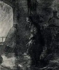 A beggar's child, delirious from hunger, falls victim to a cruel practical joke by the people from the tavern which his father stops nearby to beg for money.