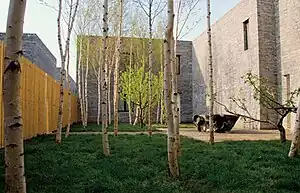 In November 2005,[1] Maggio established her own Pékin Fine Arts gallery and opened it in Caochangdi Village, which is on the northeastern edge of Beijing and has become a centre for art since leading artist, Ai Weiwei,[3] opened a studio and gallery there in 2000 for himself and friends.[3] Maggio said initially when Ai and his colleagues moved there, "We all thought they were cuckoo," as it was a place that was "basically the countryside—really far away."[4] However, as the 798 District, the center of art in Beijing, attracted increasing numbers of tourists and boutiques, galleries began to move instead in Caochangdi Village, a quiet location lined by birch and pine trees.[4] Pékin Fine Arts was set up in a complex designed by Ai of simple, low buildings, whose gray brick cladding is reminiscent of the traditional alleys (hutongs) found in old Beijing.[4]