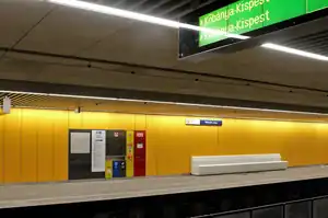 Pöttyös utca (lit. Spotted street) is a station on the M3 (North-South) Line of the Budapest Metro. Next to the station, there is a huge socialist housing estate (microraion), which named after Attila József. The station was opened on 20 April 1980 as part of the extension from Nagyvárad tér to Kőbánya-Kispest.[2]