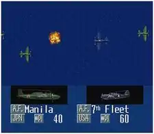 Taking control of the naval forces of both nations, each side tries to outsmart each other. Naval forces can be equipped with new technology when it becomes available. They can handle anti-aircraft weapons, radar, aiming devices, decryption units, incendiary weapons, flamethrowers, and missile weapons. Whenever the Americans are about to win the game or they score some victories, the game may have Adolf Hitler say some nasty words about the Allied Forces.[6] Battles between aircraft, ships, and infantrymen are shown as the battle for a certain region is resolved. Ships can intercept each other on the world map and engage in an impromptu combat session. However, with the perpetual victories at the conference along with the fighting power of the units, national power for the Japanese has been enhanced. A lot of units and a dedicated infrastructure could exceed the national power of the United States a few years after starting a war against them, causing a collapse in the game balance.