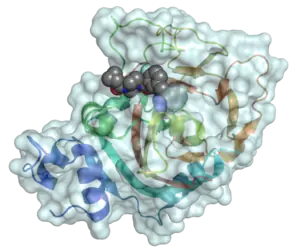 - Niraparib: In March 2017 approved by US FDA for epithelial ovarian, fallopian tube, and primary peritoneal cancer.[9][10] Inhibitor of PARP1 and PARP2.[11]