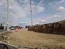 In 2009, PA 39 was widened to five lanes (two lanes in each direction with a center turning lane) when a new shopping center near the intersection of PA 39 and Progress Avenue was built.[26] At the same time, West Hanover Township made improvements to the area surrounding PA 39's interchange with I-81. Prior to the improvements, there was only one traffic light in the vicinity, located at Jonestown Road. Several traffic lights and two additional lanes with a center concrete barrier was added to handle the increased truck traffic caused by the construction of warehouses nearby in 2003 and 2004.[27][28]