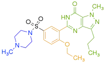 Drugs that inhibit PDE5, sildenafil, tadalafil and vardenafil, have been used as treatment for erectile dysfunction.[16] These inhibitors increase the cGMP, smooth muscle relaxation and consequently cause penis erection[9] during sexual stimulation.[17]
