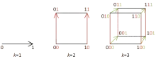 For example, in a node at level L, to determine the quadrant where a key should be inserted (or removed or looked up), it looks at the L's bit of each dimension of the key. For a 3D node with 8 quadrants (forming a cube) the L's bit of the first dimension of the key determines whether the target quadrant is on the left or the right of the cube, the L's bit of the second dimension determines whether it is at the front or the back, and the L's bit of the third dimension determines bottom vs top, see picture.