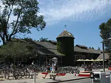 The city of Davis is a college town, with the ratio of students to long-term residents estimated at 1:4. Also contributing to the college-town environment is the close proximity of downtown Davis to the campus' main quad—a matter of a few blocks, and 5- to 10-minute walk or bike ride. Davis' 15-minute distance from Sacramento provides it with both the isolation critical to fostering a college-town environment while also providing a lively and large metropolitan area nearby. Although the campus itself is vast, the entire community of Davis is relatively small and is easily traversable on bike utilizing Davis' extensive bicycle trails.[49] The campus is the largest Campus in the UC system. Davis is known for its "interesting" architecture. Many of the buildings are confusing with false entrances and exits. The rooms tend to not go in numerical order. There is many round a bouts and it can be confusing to navigate at first. A little known fact is that there are several tunnels[50] on campus connecting buildings. A great activity is trying to find them.