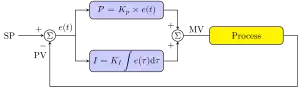 - is the error (SP is the setpoint, and PV(t) is the process variable),