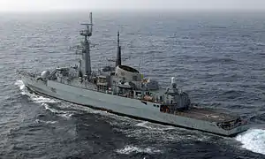 PNS Shah Jahan (DDG-186) was a Tariq-class destroyer in service with the Pakistan Navy since being recommissioned in 1994. Based on the British design, Type 21 frigate, she previously served in the Royal Navy as HMS Active as a general purpose frigate.[3]