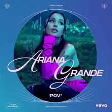 "POV" (an acronym for "point of view") is a song by American singer Ariana Grande from her sixth studio album Positions (2020). The song was released to US contemporary hit radio in the United States on March 23, 2021, serving as the album's third single. Grande wrote the song with Tayla Parx and the song's producers Mr. Franks, Oliver "Junior" Frid and Tommy Brown.