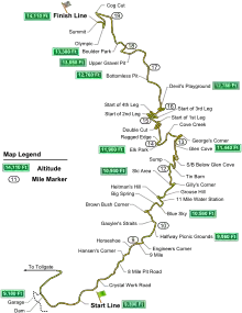 - In 2007 the course was 46% paved. The paved section comprised the start line until Halfway Picnic Grounds and the section between Glen Cove and Devil's Playground.