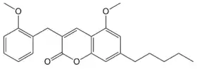 - Rempel V, Volz N, Hinz S, Karcz T, Meliciani I, Nieger M, et al. (September 2012). "7-Alkyl-3-benzylcoumarins: a versatile scaffold for the development of potent and selective cannabinoid receptor agonists and antagonists". Journal of Medicinal Chemistry. 55 (18): 7967–77. doi:10.1021/jm3008213. PMID 22916707.