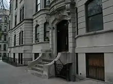 The socioeconomic changes were slowed by the ongoing development of upscale apartment houses on Prospect Park West and Plaza Street along with infill middle-class buildings throughout the neighborhood. Only a fraction of the area, centered in the traditional Gold Coast district and select adjoining blocks, retained wealthy and upper middle-class residents into the 1940s.[53] The Emery Roth-designed 35 Prospect Park West, marketed as a competitor to the upscale apartment houses of Fifth Avenue, Park Avenue and Central Park West, opened right before the Great Depression in 1929, and contained a variety of luxury accommodations (including penthouses, duplexes and maisonettes) alongside "just plain apartments".[54] While the building attracted such notable residents as pharmaceutical executive John L. Smith and remained a "solid fortress of wealth" for decades, it ultimately failed to anchor comparable development in the neighborhood.[55]