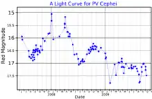 PV Cephei is variable star of Orion type located in the constellation of Cepheus at a distance of over 1600 light-years from Earth.[1]