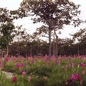 Bua Sawan Field, has only a plant is called "Siam tulip" because it is a flower that is related to various ginger species such as turmeric. Another name that people actually call this flower is "Dok Kra jiao". The people that come to Plants in Pa Hin Ngam, they also come to see this flower. But Dok Kra jiao 's flower doesn't grow for the whole year, It grows only on the rainy season. It is the most beautiful plant in the national park.[7]