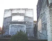 The theater's stage house abutted the Elsinore Theatre's stage house and the bricked-in proscenium arch can still be seen
