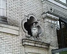 Terra cotta facade detail is all that remains of the theater portion of the building
